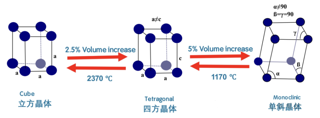 圖 氧化鋯晶體結(jié)構(gòu)及其相變,來(lái)源網(wǎng)絡(luò)